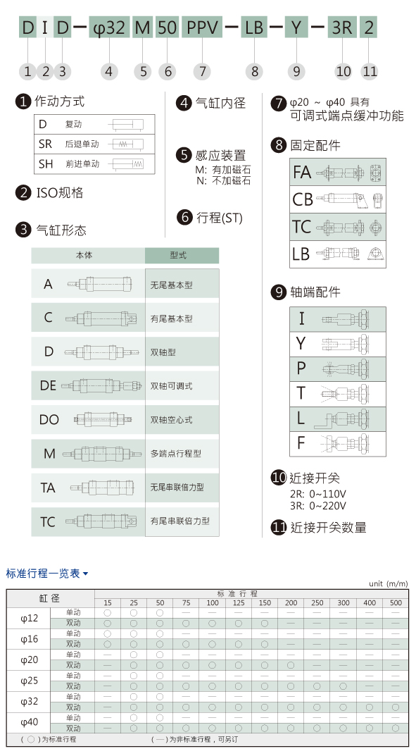 HINAKA另有以下系列 DIC 有尾基本型 DID 双轴型 DIDE 双轴可调型 DIDO 双轴空心型 DIDM 多端点行程型 DITA 无尾倍力型 DITC 有尾倍力型 DIA-C 无尾缓冲加长型 DIC-C 有尾缓冲加长型